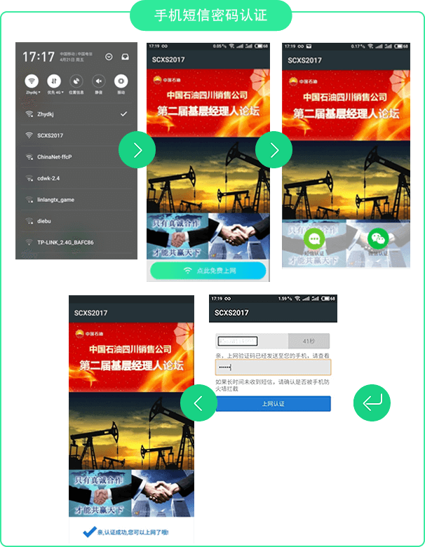 用户终端采用MAC地址、手机号加SSID的方式进行绑定,可以进行短信/微信认证,提升了
