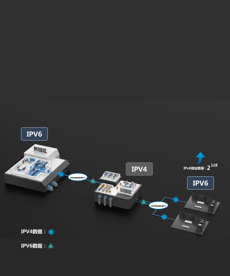 硬件支持双协议栈信息高速交换,满足从园区IPV4到IPV6的网络过渡,地址容量与网络安全大大提升