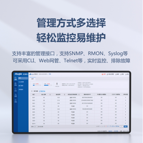 支持RMON、Syslog、USB备份日志特性,保障日常用网的正常诊断与维护