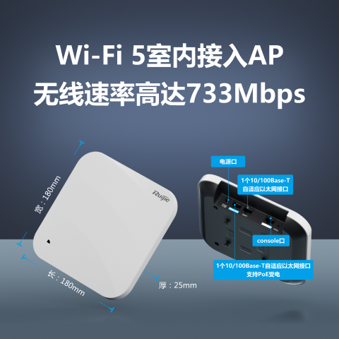 Radio1:2.4GHz,300Mbps Radio2:5GHz,433Mbps 整机最大接入速率: 2.4GHz+5GHz,733Mbps